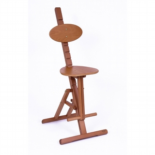 Verstelbare kruk van gelakt beukenhout met rugleuning.
